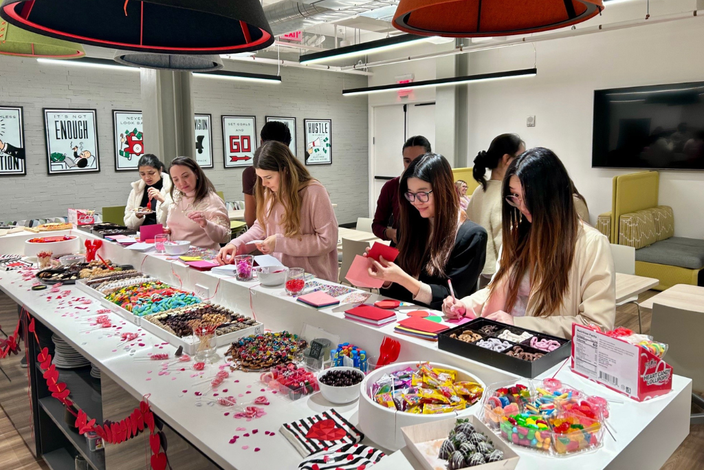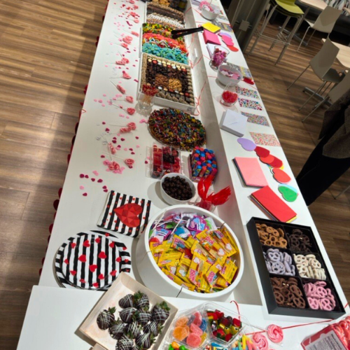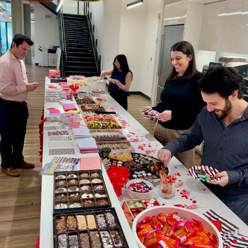 On Thursday, February 12, we celebrated a little early with a pre-Valentine’s Day gathering in the office. Chocolate-covered treats from Oh! Nuts, along with other sweet selections, provided a festive midday break. A DIY card station also gave team members the opportunity to create personalized Valentine’s Day cards.